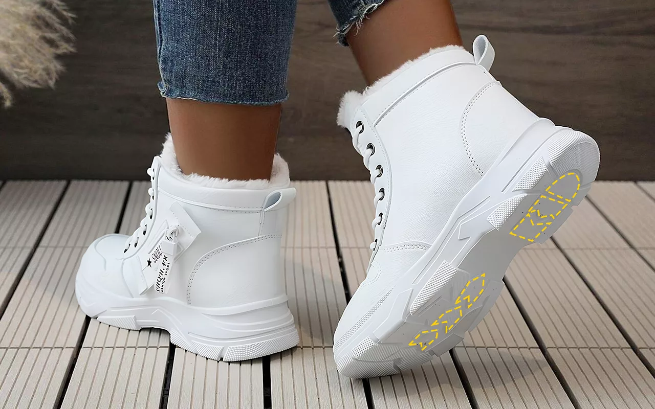 Kuvioitu pohja auttaa pysymään tukevasti liukkailla teillä. Liiku itsevarmasti ilman huolta liukastumisista tai kaatumisista.