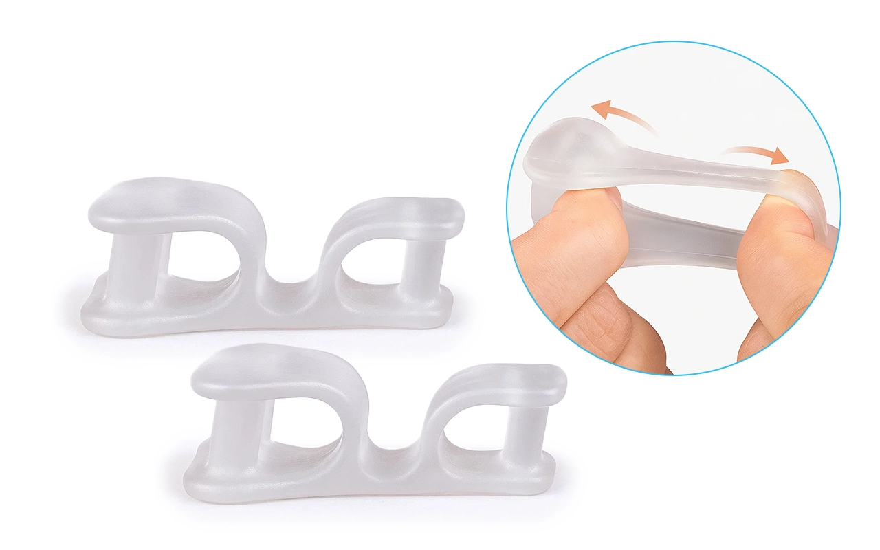 Nauti paremmasta mukavuudesta joka päivä Ortorex-varpaanerottimen avulla. Pehmeä silikoni pitää varpaat hellästi erillään ja tukee jalan luonnollista muotoa. Käytä päivittäin estämään kipua ja edistämään tervettä liikettä. Joustava rakenne sopii mukavasti mihin tahansa jalkaan tarjoten pitkäaikaista tukea.