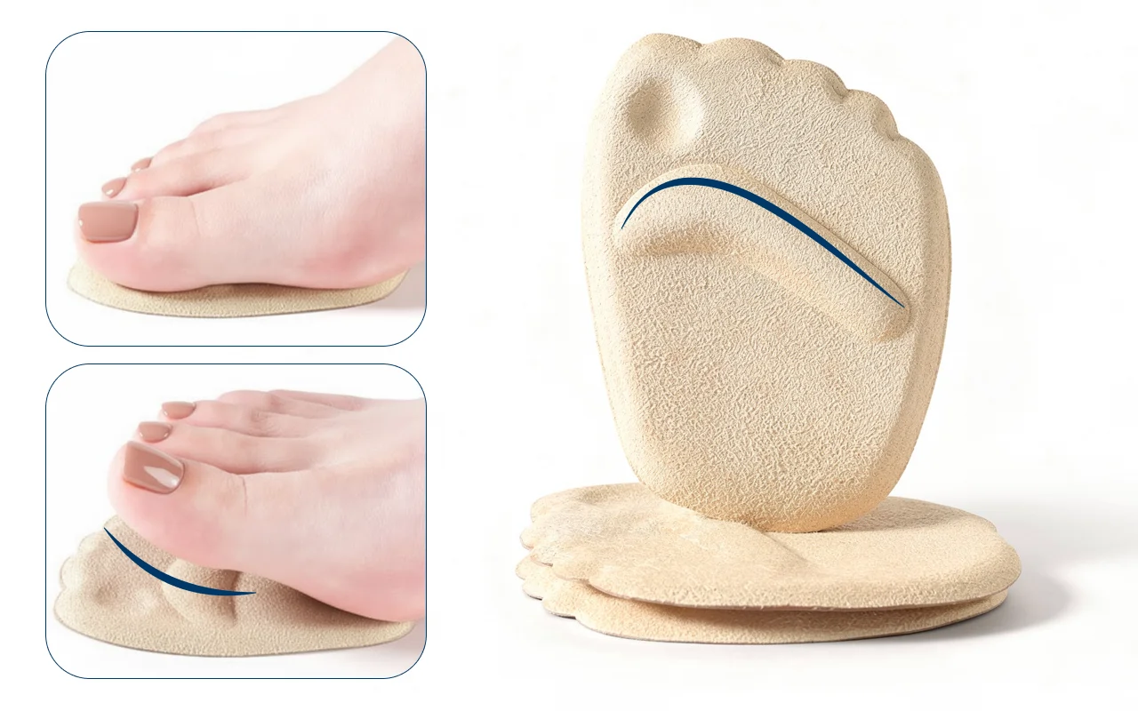 Pehmeä pehmuste rauhoittaa kipeitä jalkoja pitkän päivän jälkeen. Auttaa ehkäisemään vaivoja kuten vaivaisenluut, kovettumat ja känsät.