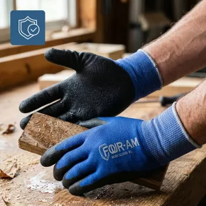 Erityinen pinta tarttuu lujasti märkiin, öljyisiin ja liukkaisiin työvälineisiin. Luotettava pito vähentää pudotettujen välineiden aiheuttamia tapaturmia, säästäen aikaa ja vaivaa.