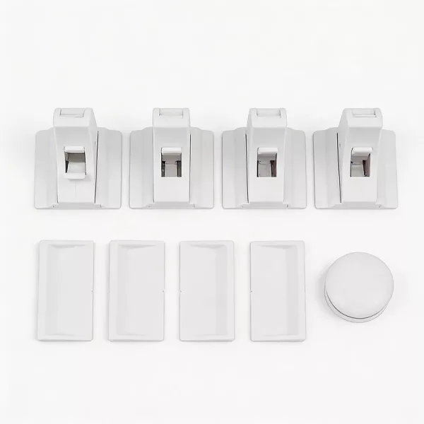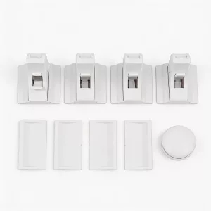 Asenna jokainen salpa vain muutamassa minuutissa. Vahva liimapinta pitää jokaisen osan tukevasti paikoillaan jättämättä jälkiä.