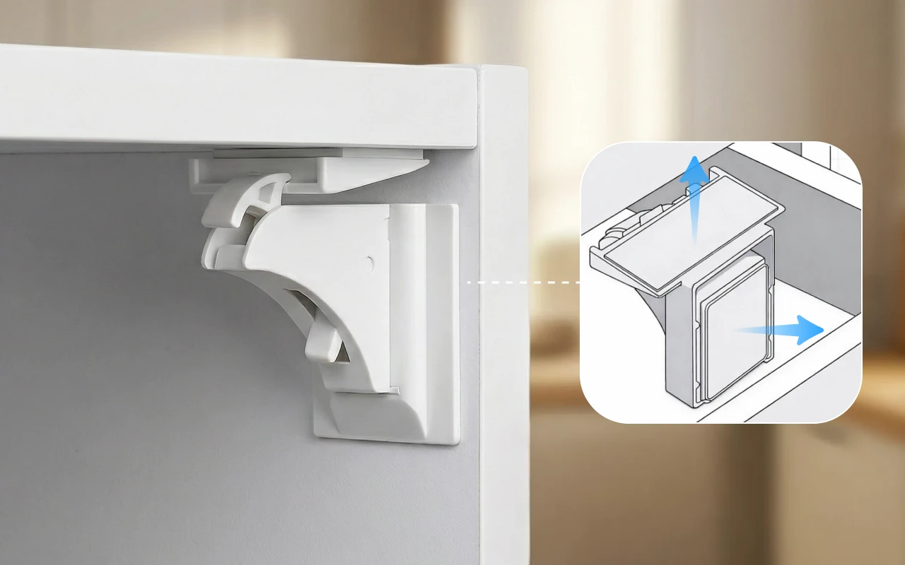 Pienet kädet tutkivat nopeasti, ja onnettomuudet tapahtuvat silmänräpäyksessä. Ortorex-magneettiset turvalukot pitävät laatikot ja kaapit suljettuina. Asennukseen ei tarvita työkaluja eikä porausta missään kodin osassa. Älykäs, näkymätön muotoilu pitää huoneet siisteinä ja kauniina. Jokainen salpa antaa mielenrauhaa vilkkaiden taaperoiden keskellä.