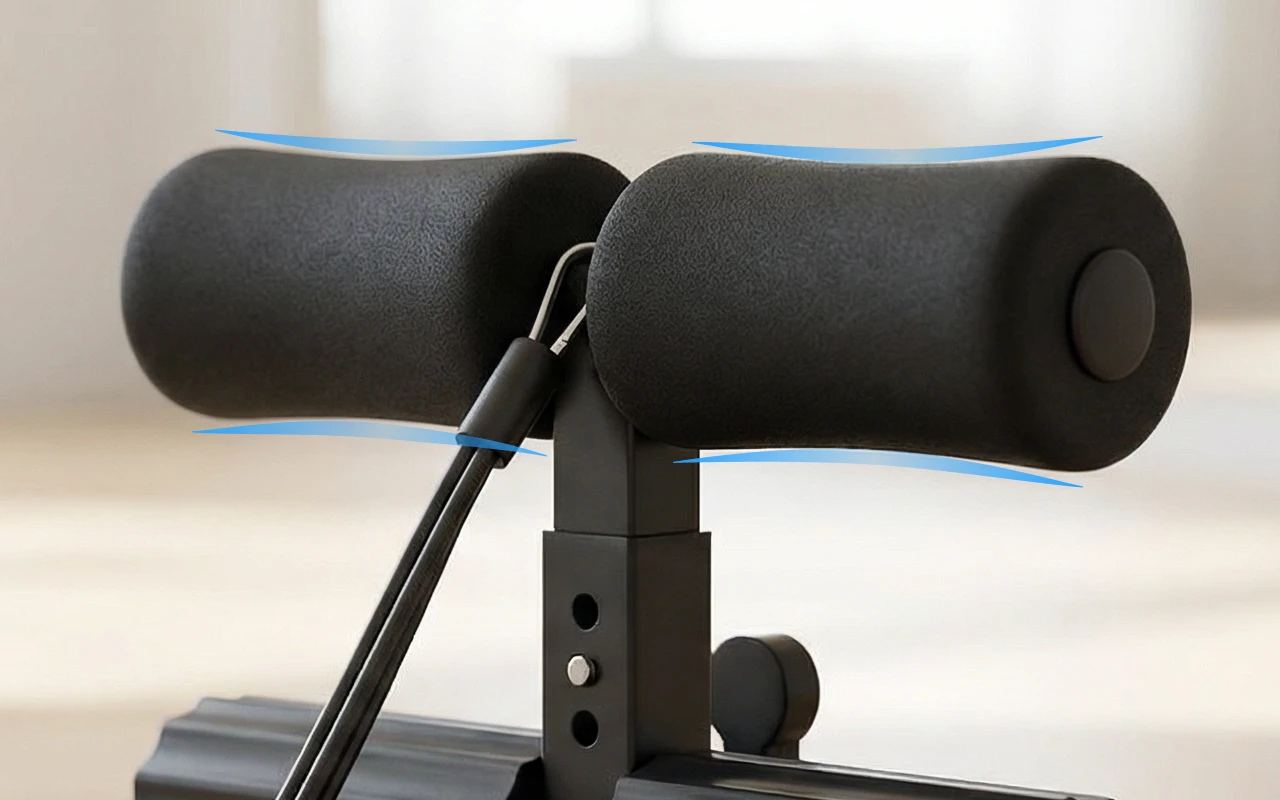 Vaahdotetut pehmusteet tuntuvat pehmeiltä mutta tukevilta luisten nilkkojeni alla. Voin vihdoin tehdä istumaannousuja ilman pyyhkeiden pinoamista tai että pyydän vaimoani pitelemään jalkojani.