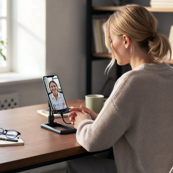 Käytän telinettä videopuheluihin ystävieni kanssa. Se pysyy missä tahansa, pitää puhelimen tiukasti kiinni, eikä tarvitse pelätä liukumista.