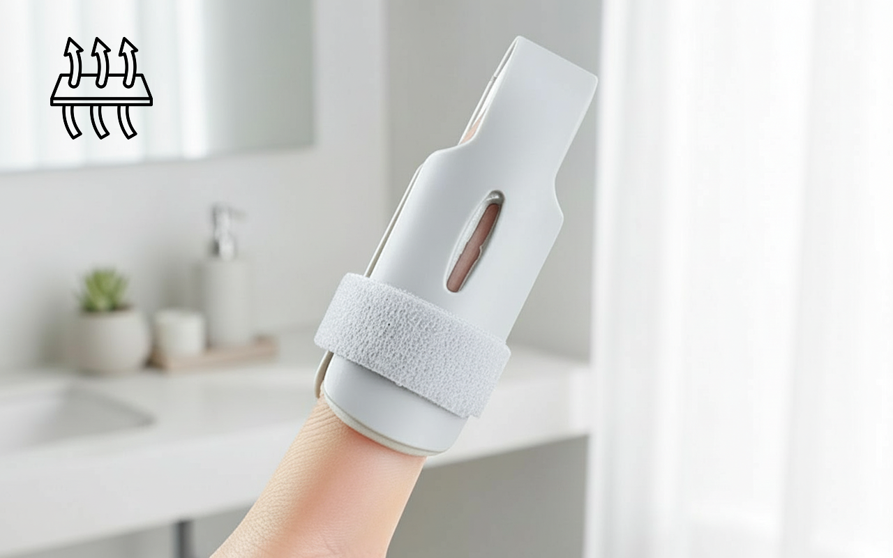 Erikoisaukot antavat ilman virrata helposti, pitäen ihon viileänä ja raikkaana. Käytä Ortorex-sormilastaa pidempään ilman hikoilua tai kutinaa.