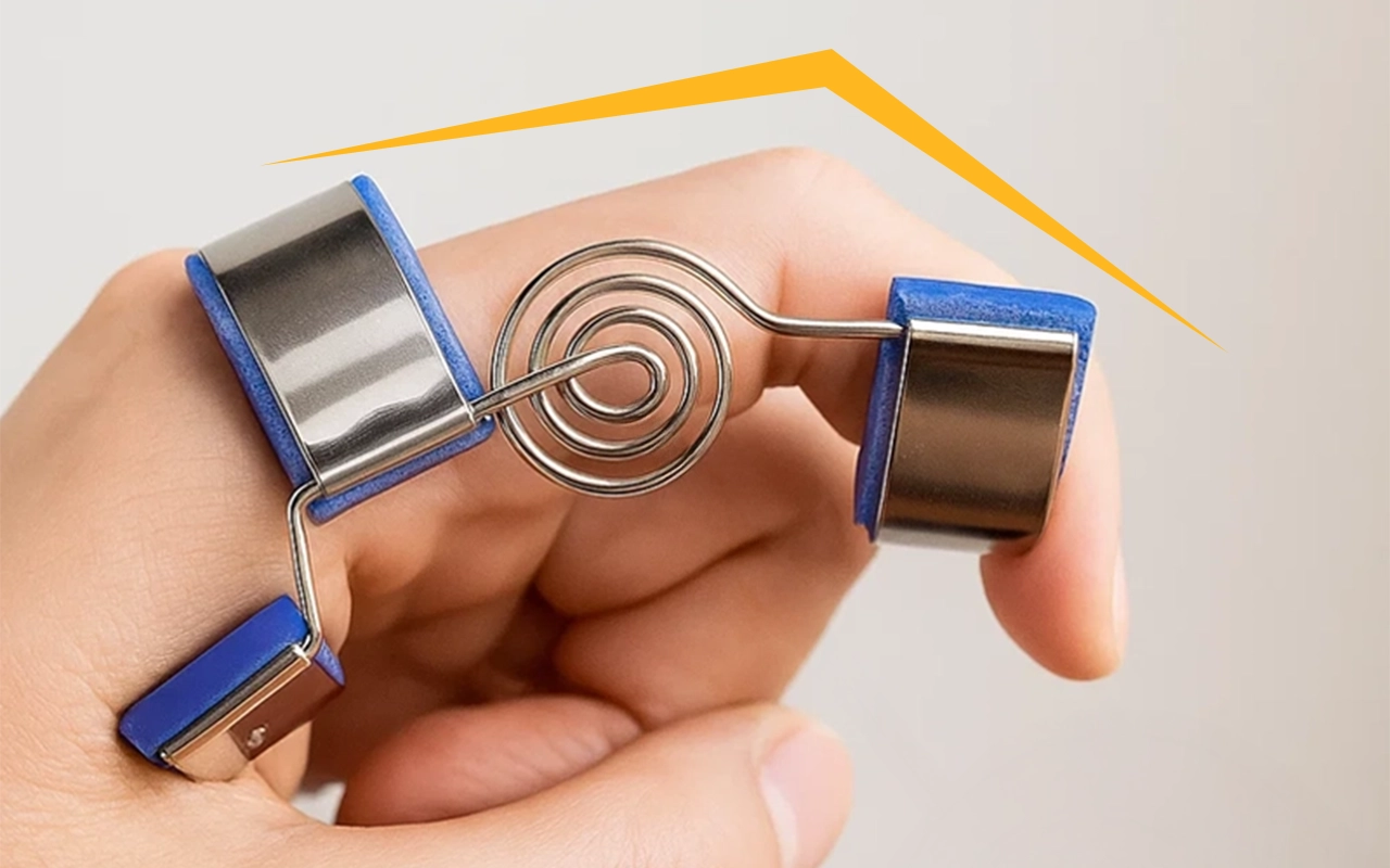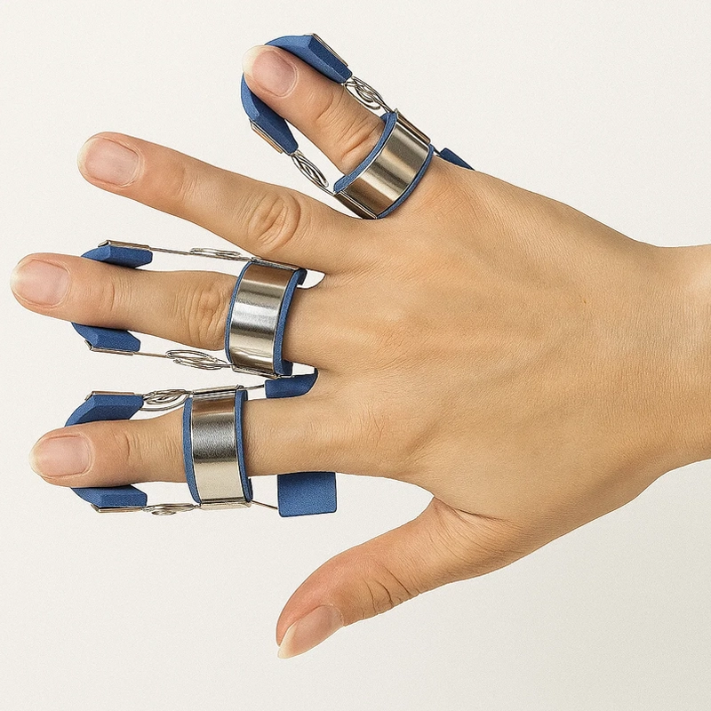 Käytän tätä nimettömässä nukkuessani, jotta se ei käpertyisi. Jousitettu tuki venyttää sormea lempeästi, ja herään vähemmän jäykkänä.