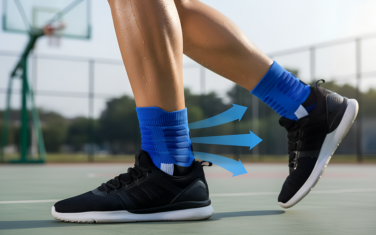 Nämä sukat pitävät jalat viileinä koripallopelien aikana. Ne eivät kastu tai valu alas, eikä varpaat tunnu ahtailta edes tuntien ulkoilun jälkeen.