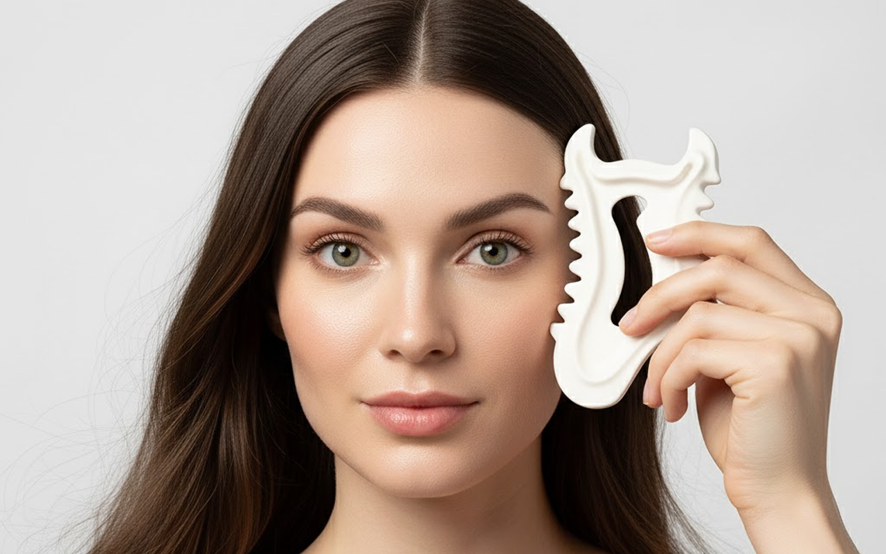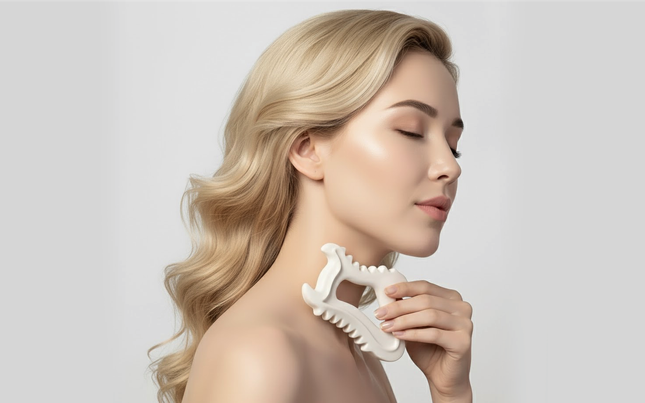 Gua sha saa kasvoni hehkumaan ja näyttämään terveeltä ilman suurta vaivaa. Keramiikka tuntuu aluksi viileältä, mikä on todella rauhoittavaa.