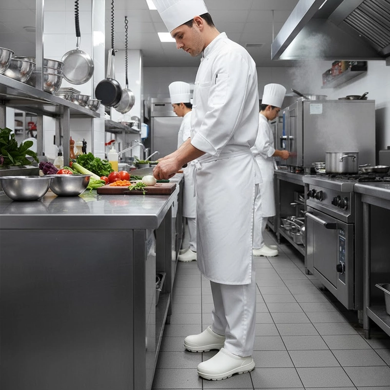 Ortorex kokkikengät suojaavat liukastumisilta joka päivä. Rasva tai vesi laatoilla eivät hidasta työskentelyäsi. Kevyt rakenne pitää jalkasi rentoina jokaisen vuoron aikana. Puhdistus on helppoa ja nopeaa kiireisenkin työpäivän jälkeen. Valitse mukavuus ja turvallisuus pitkille työvuoroille ilman vaivaa.