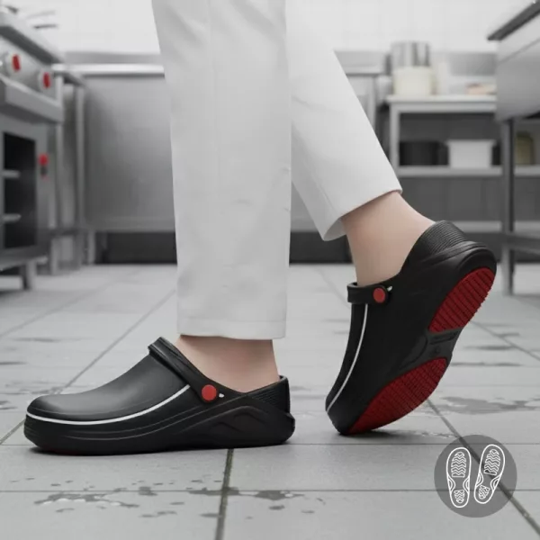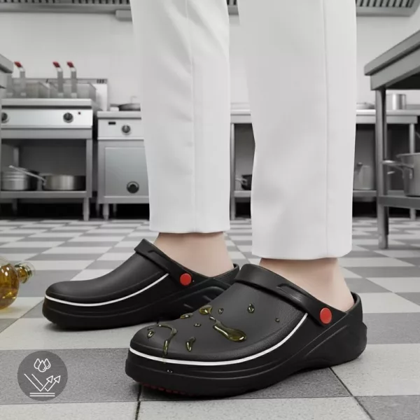Nämä keittiökengät ovat niin mukavat jopa tuplavuoron jälkeen. Jalkani eivät satu ollenkaan ja rakastan, kuinka helppo ne on puhdistaa.