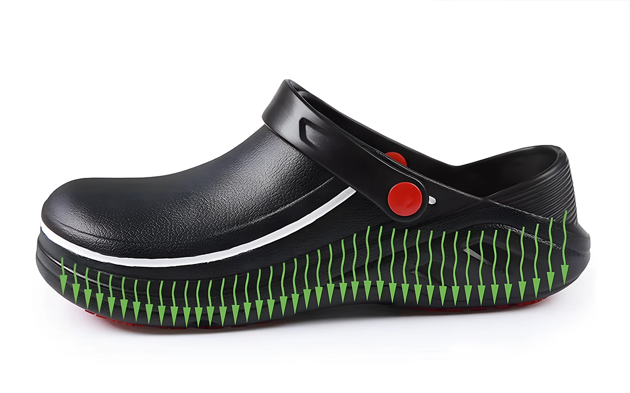 Kosteat lattiat ja öljyiset kohdat eivät ole enää ongelma. Ainutlaatuinen pohjakuvio pitää jokaisen askeleen vakaana ja varmana.