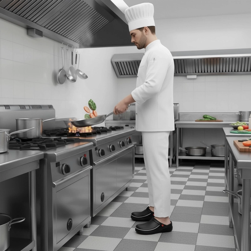 Nämä keittiökengät ovat niin mukavat jopa tuplavuoron jälkeen. Jalkani eivät satu ollenkaan ja rakastan, kuinka helppo ne on puhdistaa.