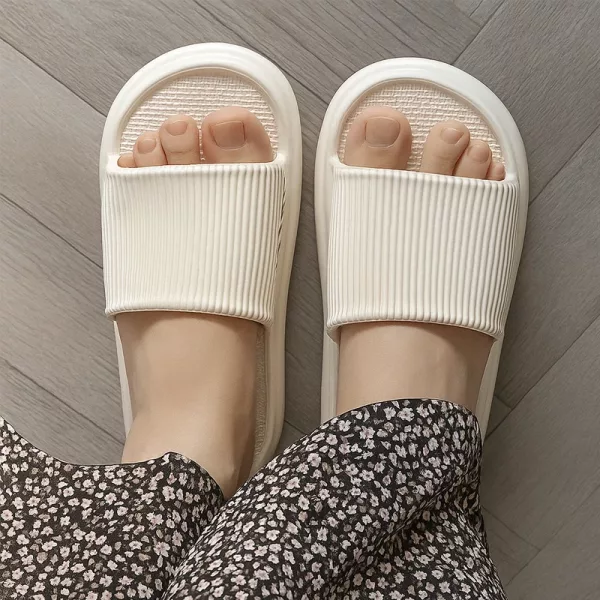 Nämä tohvelit ovat pehmeimmät, joita olen koskaan kokeillut. Jalkani tuntuvat onnellisilta ja rentoutuneilta, vaikka seisosin pitkiäkin aikoja. Avoin kärki pitää ne mukavan viileinä.