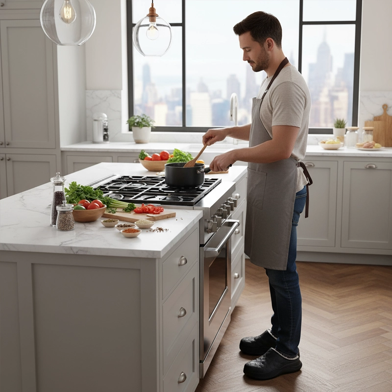 Ulkokerros hylkii roiskeita pitäen jalat kuivina ja puhtaina. Ei huolta keittiön tai käytävän roiskeista.