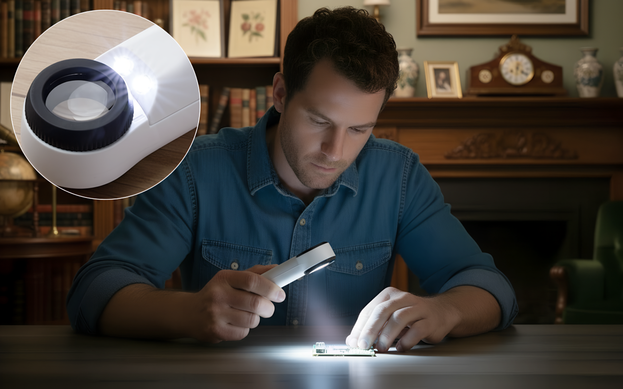 Käytän tätä lasia isäni vanhojen kolikoiden tarkasteluun. Vahva suurennus ja valot auttavat näkemään vuosiluvut ja pienet merkit, joita en ollut aiemmin huomannut.