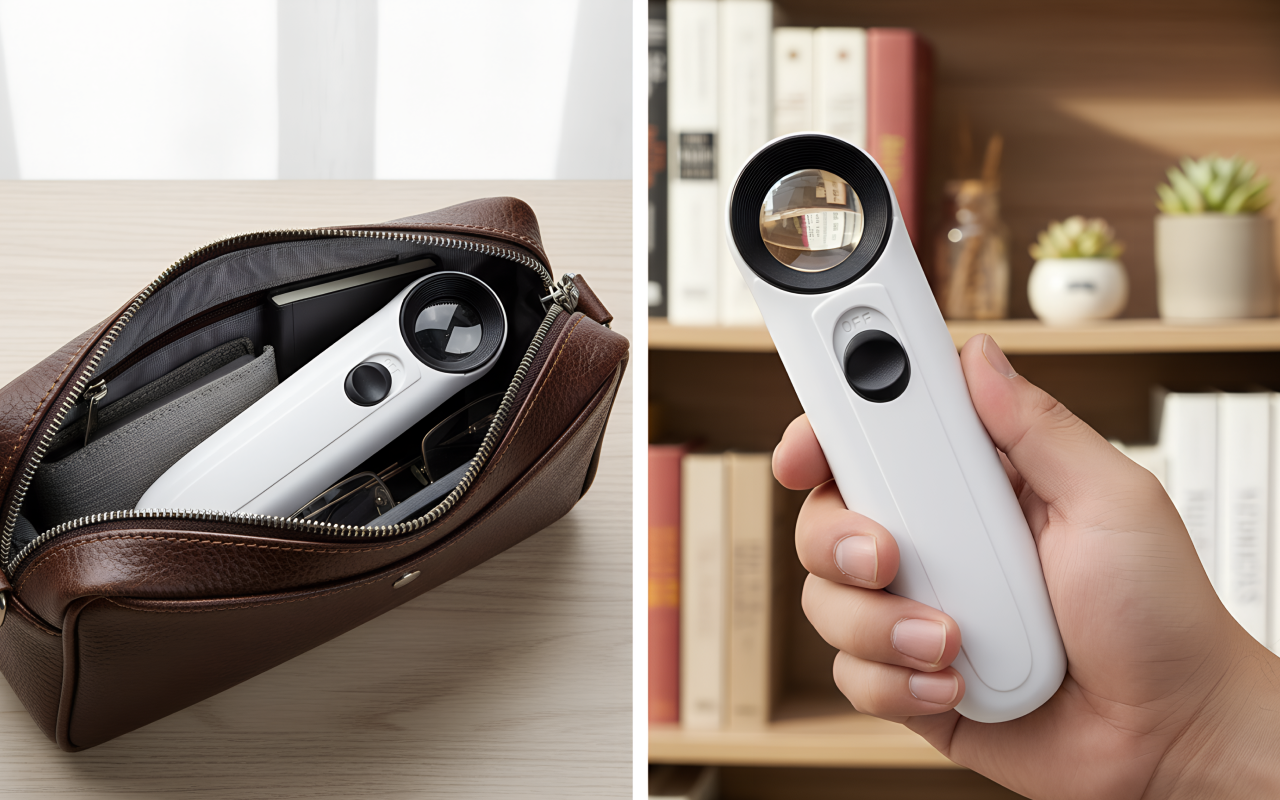 Pidän tätä suurennuslasia laukussani valikoita ja kuitteja varten. Se on pieni, kirkas ja antaa minun lukea pientä tekstiä hämärissä ravintoloissa ilman ongelmia.