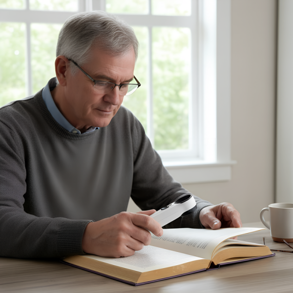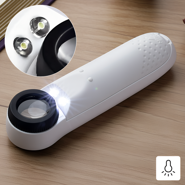 Ostin tämän pienen suurennuslasin lääkepakkausten etikettien lukemiseen. 40x zoomi ja kirkkaat LED‑valot tekevät pienistä kirjaimista selkeitä ilman että silmäni rasittuvat.