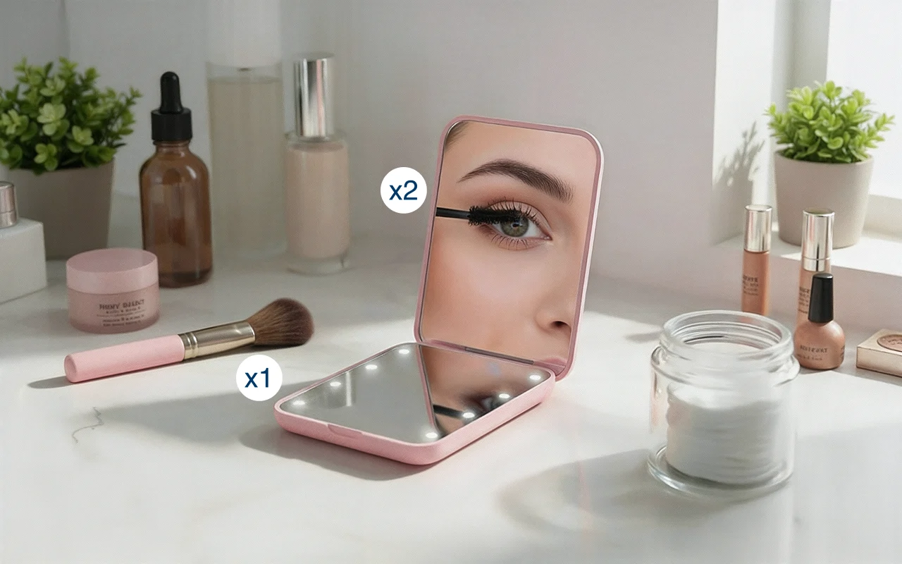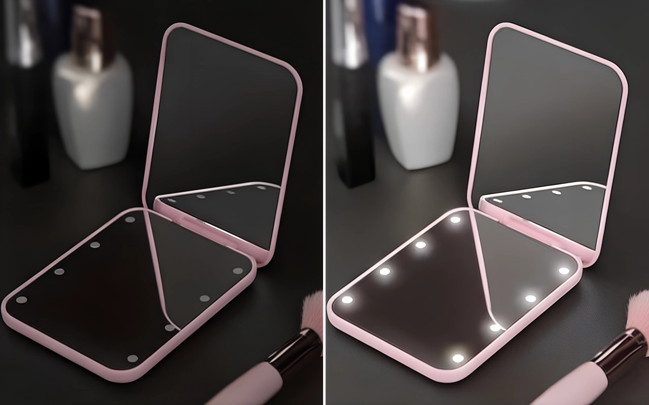 LED-valot loistavat kirkkaasti, mikä helpottaa kosmetiikan levittämistä. Näkyvyys paranee jopa hämärissä tiloissa, mikä mahdollistaa tarkan lopputuloksen.