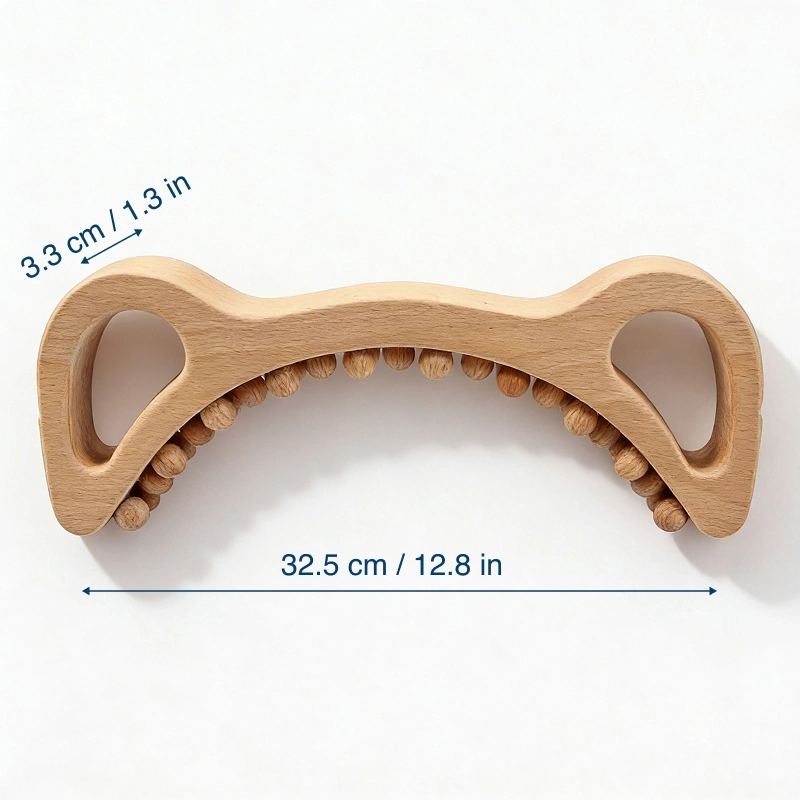 Juoksen paljon ja tämä pieni hierontalaite pelastaa kipeät pohkeeni ja takareiteni. Painetta on helppo säädellä ja puu tuntuu miellyttävältä iholla.