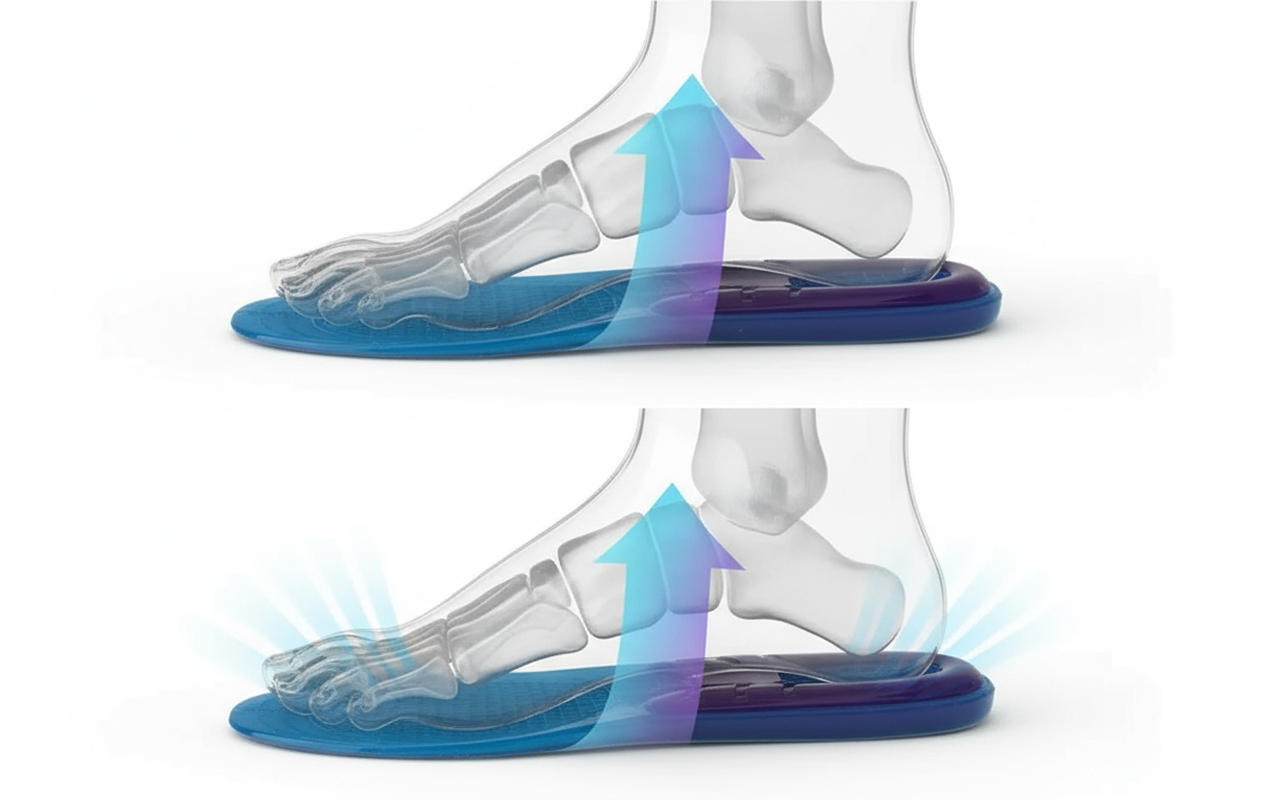 Paksut silikonigeelipehmusteet pehmentävät jokaista askelta liikkuessasi. Nivelet ja kantapäät pysyvät suojattuina, mikä vähentää päivittäistä rasitusta.