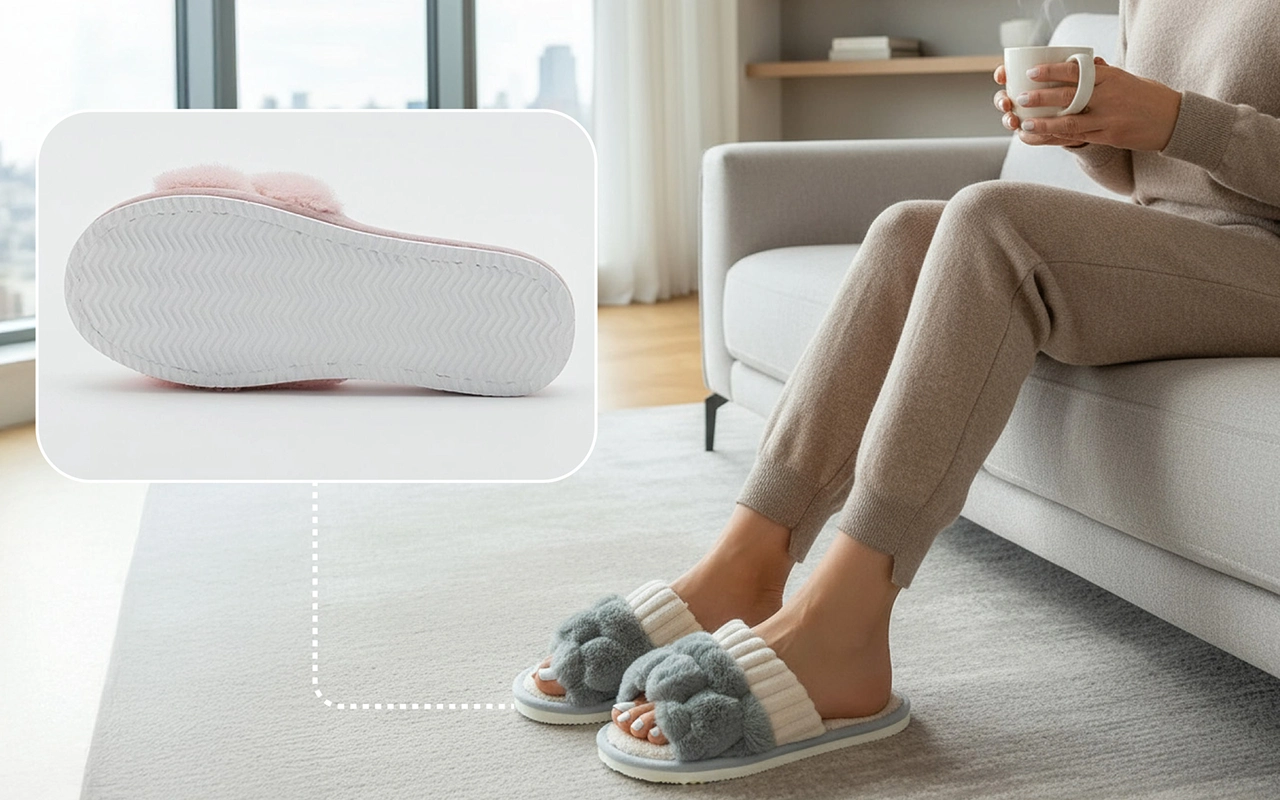 Pysy vakaana millä tahansa lattialla pitävän EVA-pohjan ansiosta. Kävele turvallisesti sisällä ilman huolta liukastumisesta.