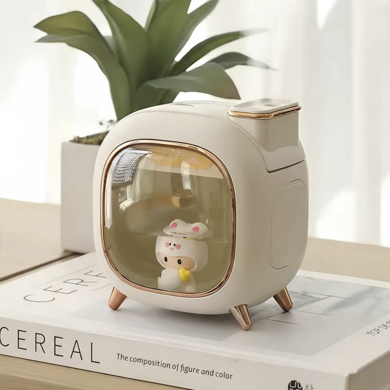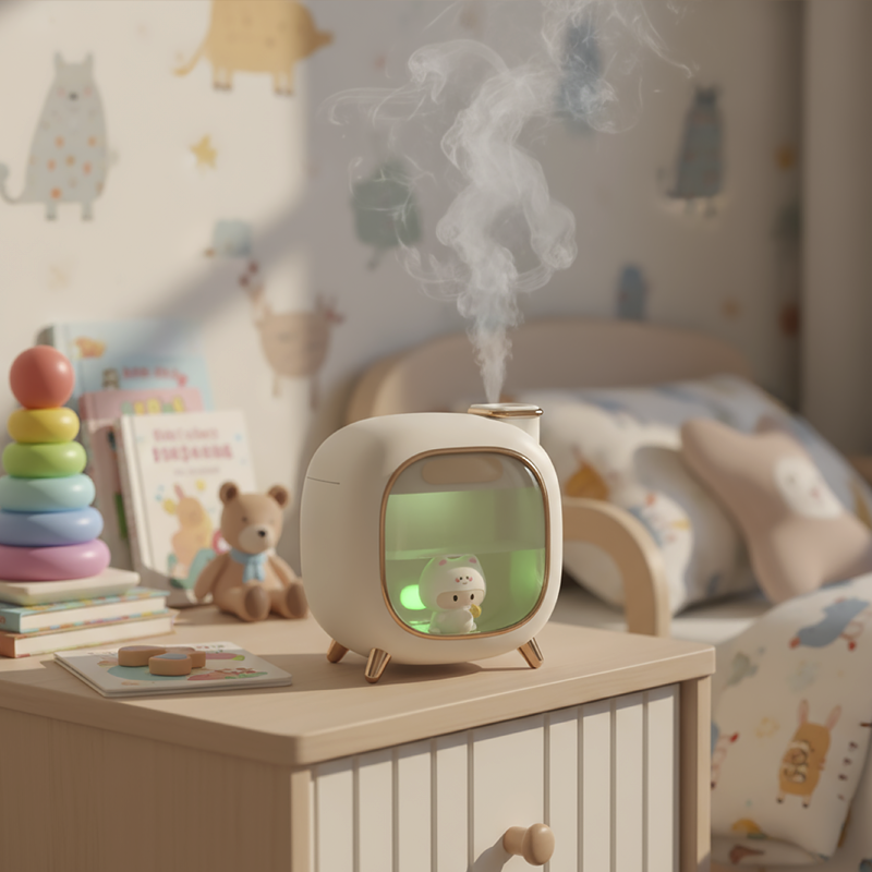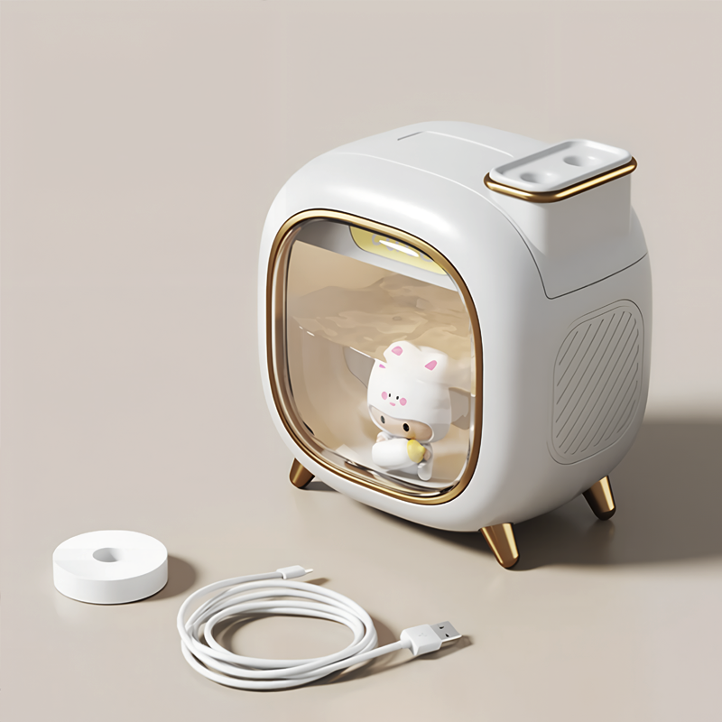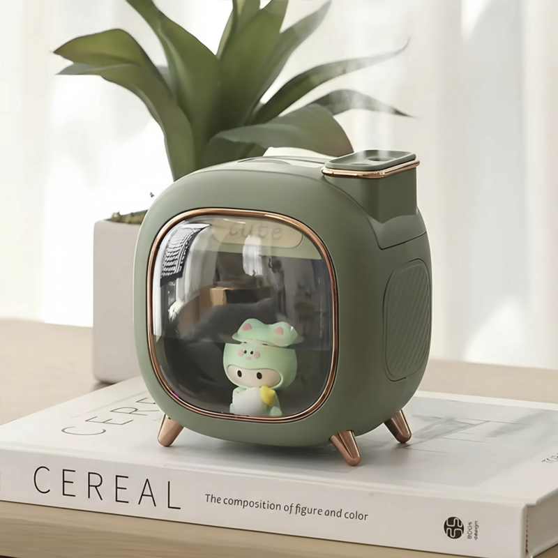 Tämä pieni ilmankostutin tekee ihmeitä. Ihoni kutiaa vähemmän nyt. Hellävarainen sumu sopii täydellisesti olohuoneeseemme.