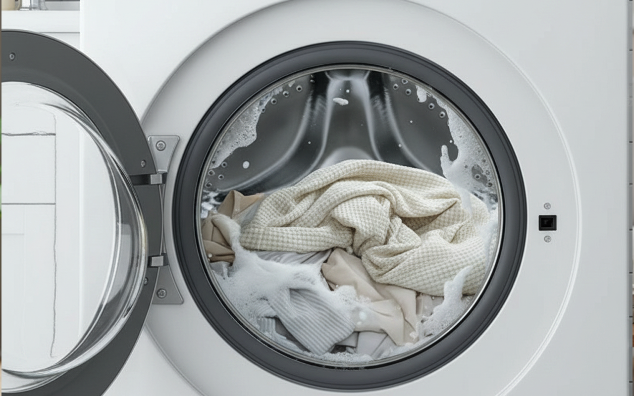 Joustava materiaali istuu laitteen päälle juuri oikein. Vedän sen helposti pois pestäväksi ja taas näyttää siistiltä. Yksinkertaista ja siistiä.