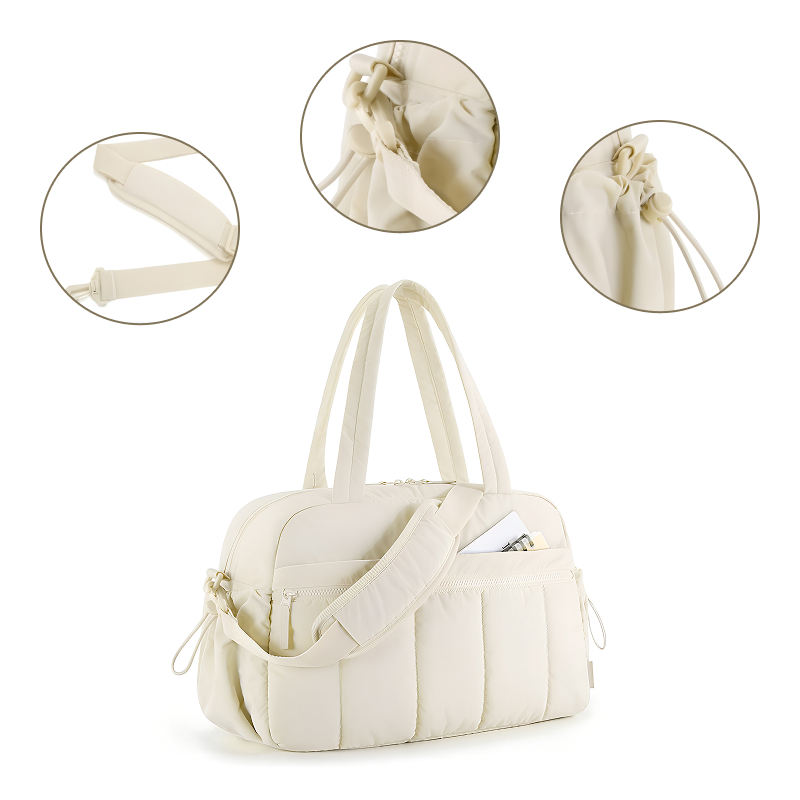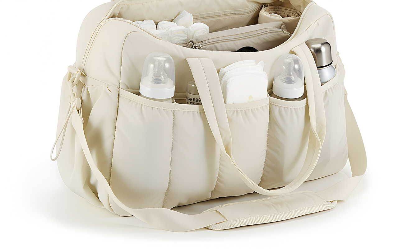 Useat taskut erottelevat vaipat, pyyhkeet ja pullot nopeasti. Kaikki pysyy järjestyksessä, mikään ei häviä tai litisty.