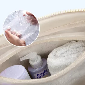 Ei enää pientavaroiden tai voiteiden etsintää! Tämä laukku pitää kaiken siistinä ja yksinkertaisena. Helppo pyyhkiä puhtaaksi, jos jotain läikkyy.