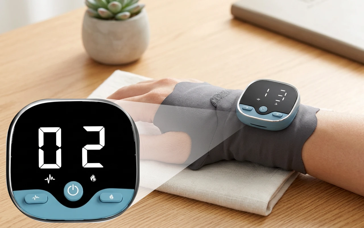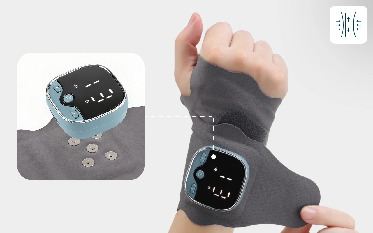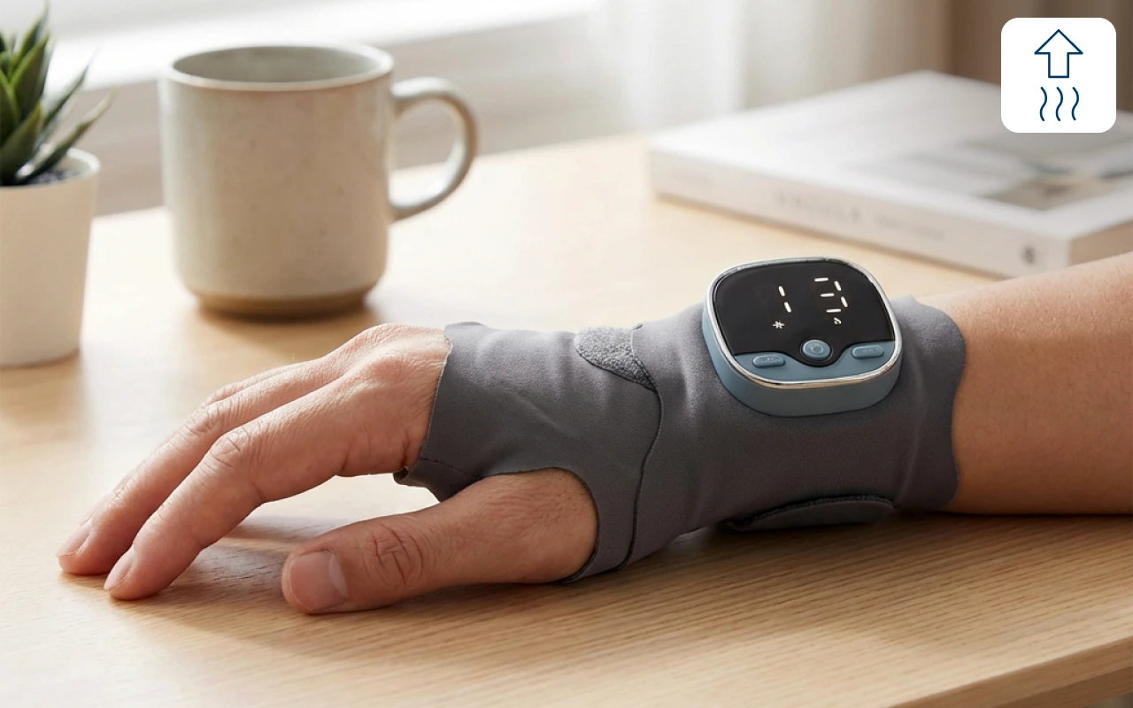 Käytän tätä rannepantaa joka ilta kokopäiväisen kirjoittamisen jälkeen. Lämpö ja puristava liike sulattavat jännityksen, ja vihdoin nukun ilman heitteleviä käsiä.