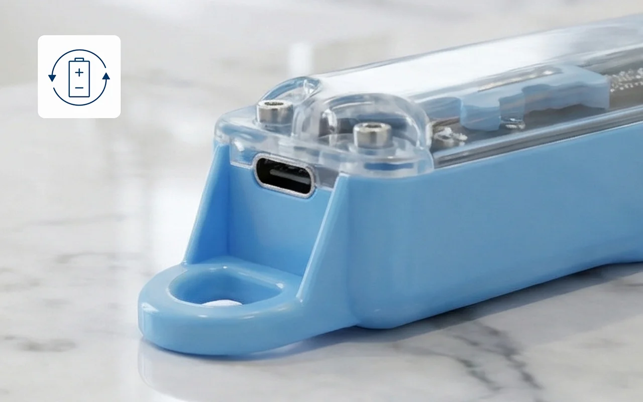 Lataa nopeasti USB:n kautta luotettavaan päivittäiseen käyttöön. Digitaalinäyttö kertoo aina, milloin lataus on tarpeen.