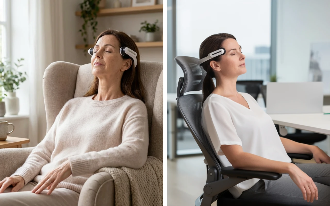 Käytä Ortorex-ohimohierontalaitetta missä tahansa, kotona tai toimistolla. Kevyen rakenteen ansiosta saat helpotusta kaikkialla.