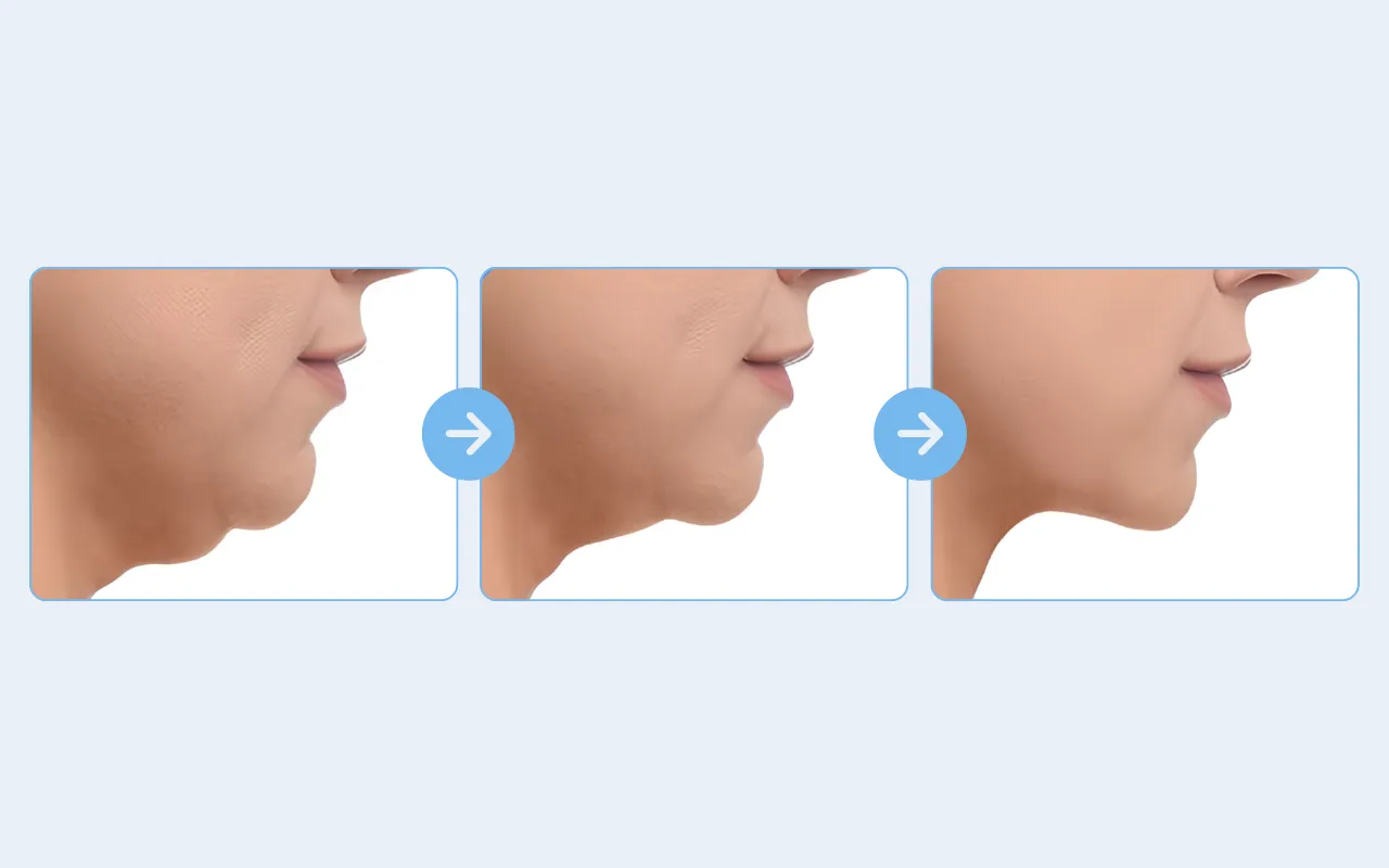 Hellävarainen stimulaatio kohdistuu löysiin alueisiin tuoden selkeämmän kasvonpiirteen. Huomaa hoikempi profiili säännöllisillä päivittäisillä käytöillä.