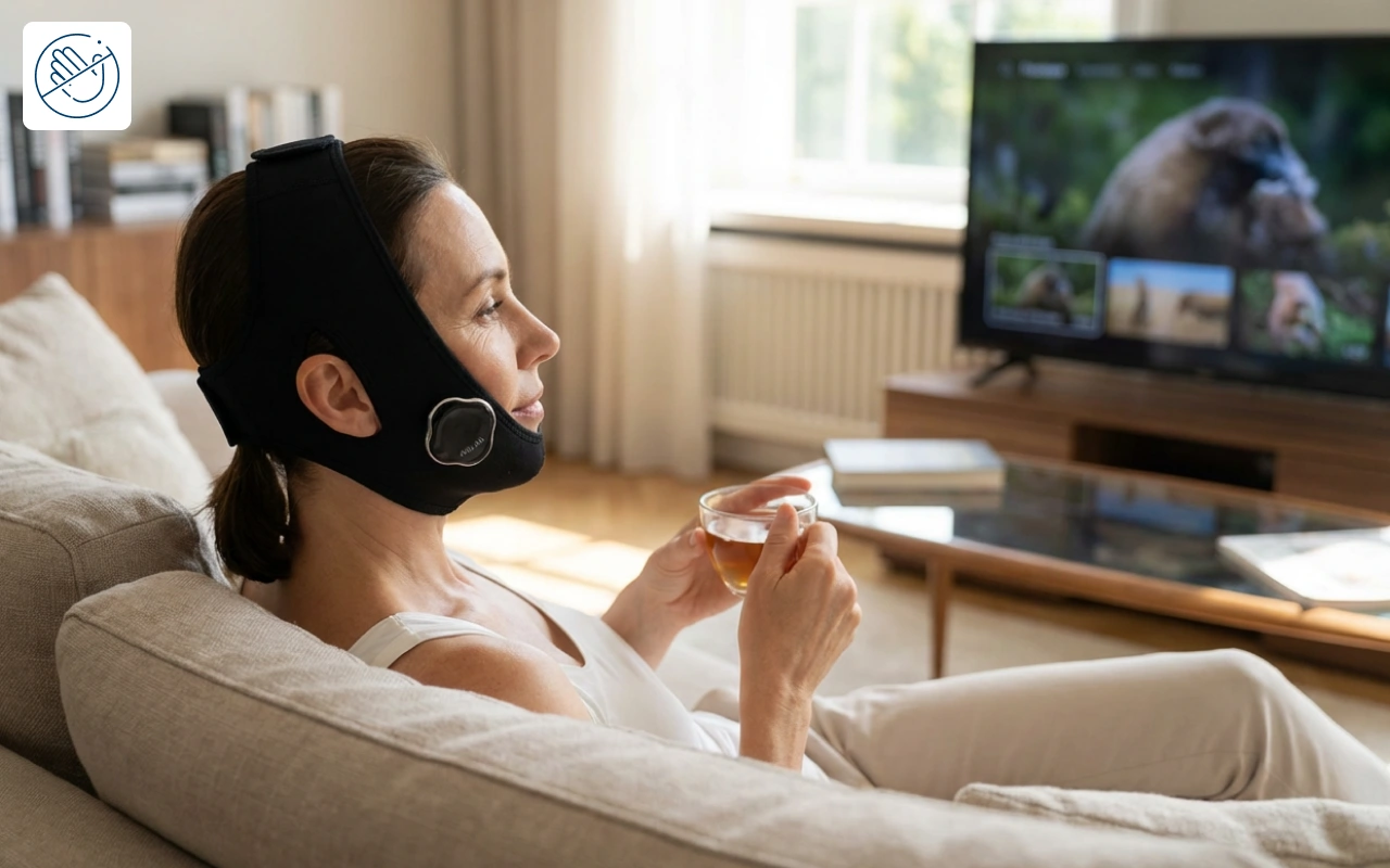 Käytin leukahihnaa joka ilta TV:tä katsoessa, ja kasvoni näyttävät vähemmän turvonneilta. Rakastan kuinka mukavalta silikoni tuntuu kasvojeni ympärillä.