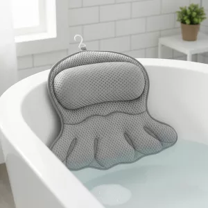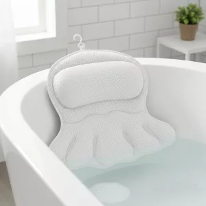 Tämä kylpytyyny on todella pehmeä niskaa vasten, ja lisäksi se pysyy paikoillaan koko ajan. Tekee iltakylvyistä paljon mukavampia!