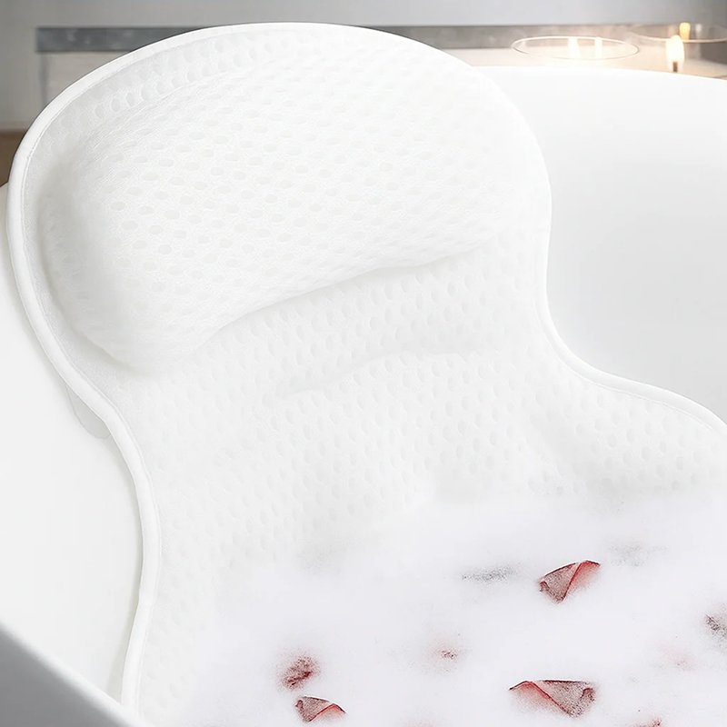 Tämä kylpytyyny on todella pehmeä niskaa vasten, ja lisäksi se pysyy paikoillaan koko ajan. Tekee iltakylvyistä paljon mukavampia!