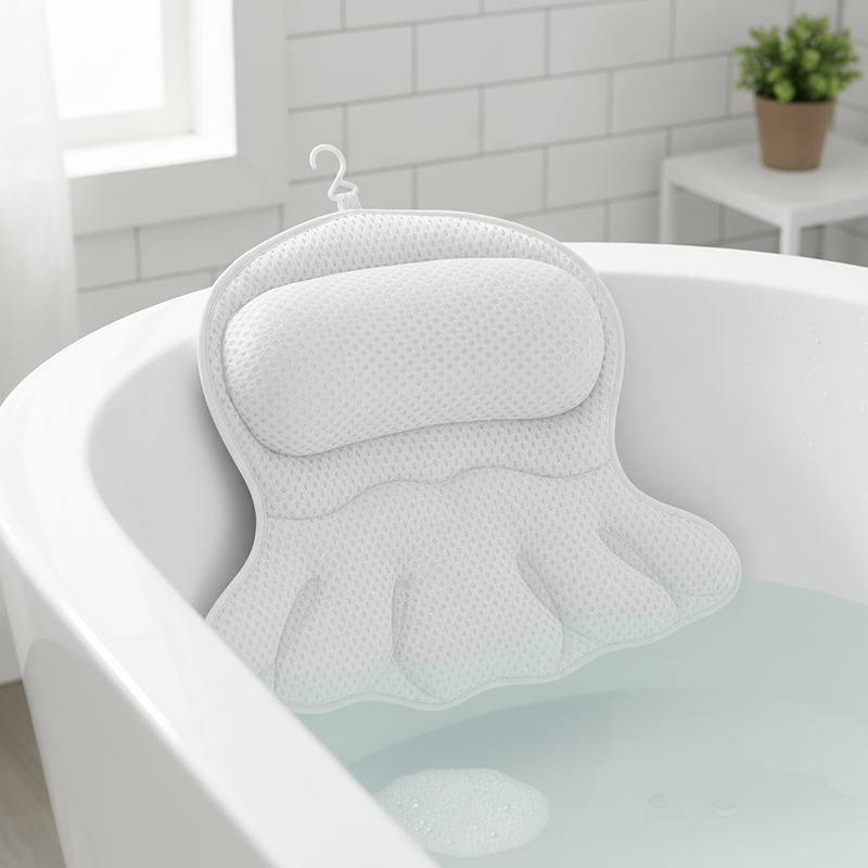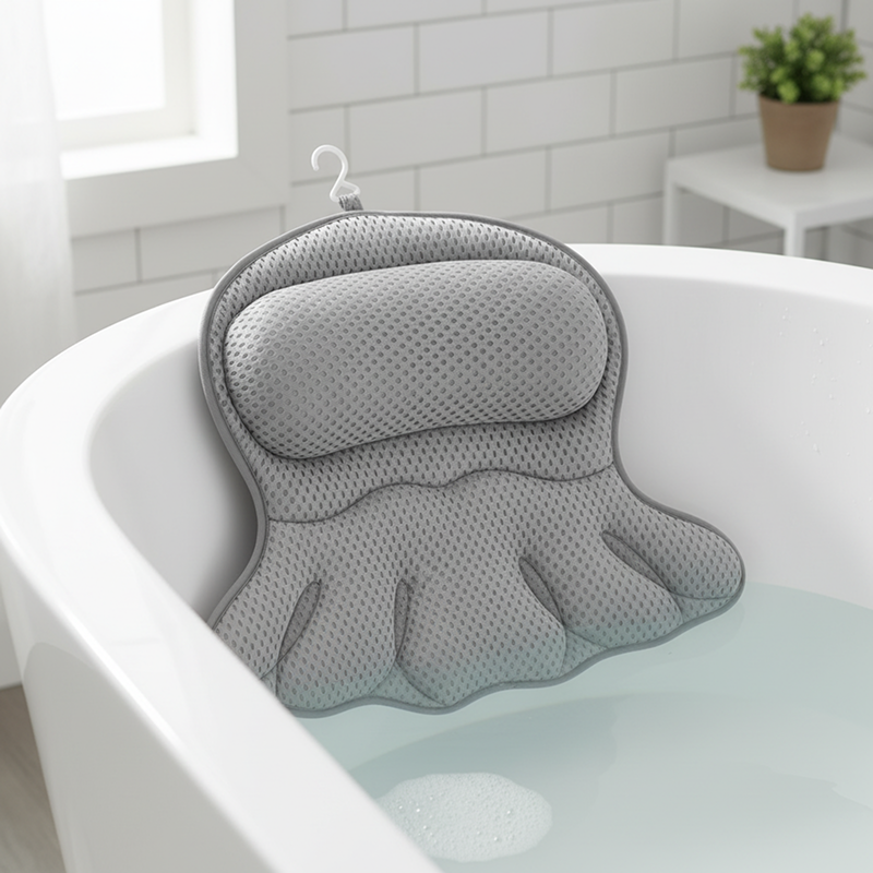 Käytän tätä tyynyä jokaisella kylpykerralla ja olo on aina paljon parempi jälkeenpäin. Ei enää kovan ammeen reunan painetta, ja voin nojata pidempään.