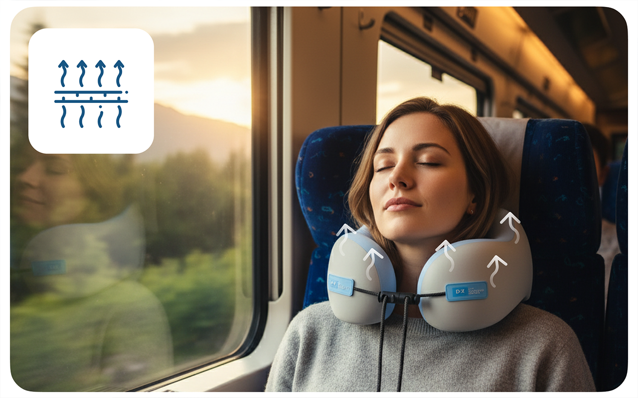 Pitkät matkat aiheuttavat usein kipeitä hartioita, jäykkiä selkiä ja väsyneitä mieliä. Ortorex-tyyny hellästi tukee päätäsi ja parantaa ryhtiäsi. Jokainen matka tuntuu lyhyemmältä ja miellyttävämmältä kaikille. Rentoudu helposti, kun tiedät että mukavuus ja terveys ovat aina käsillä.