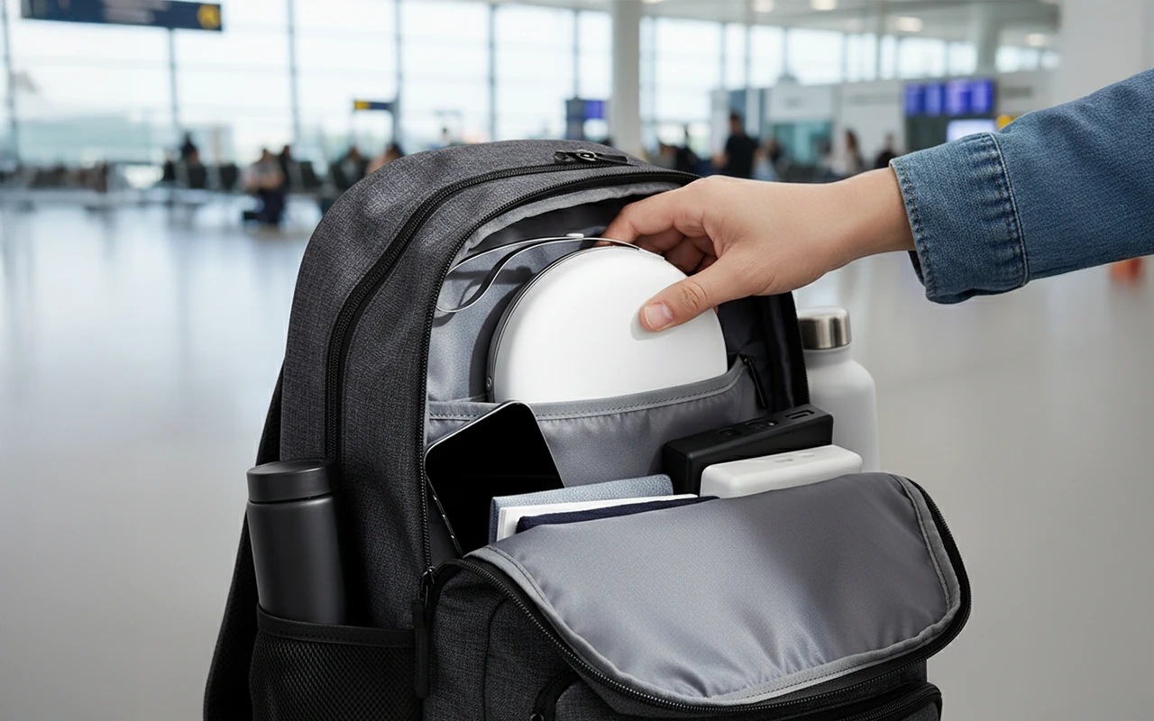 Mahtuu pieneen koteloon ja säästää arvokasta laukkutilaa. Ota se helposti mukaan: lentokoneisiin, autoihin tai minne tahansa.