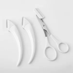 Kulmakarvasetin käyttö tekee siistimisestä niin nopeaa ennen töihin lähtöä! Sakset tuntuvat pehmeiltä ihoa vasten ja puhdistus on todella helppoa. Rakastan uutta rutiiniani.