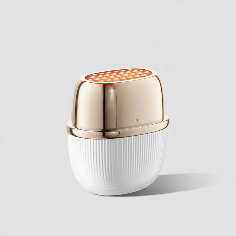 LED-valot auttavat himmeän sävyn häivytyksessä ja lisäävät hehkua. Kolme väriä valoterapiaa tuovat välitöntä kirkkaampaa ilmettä väsyneille kasvoille.