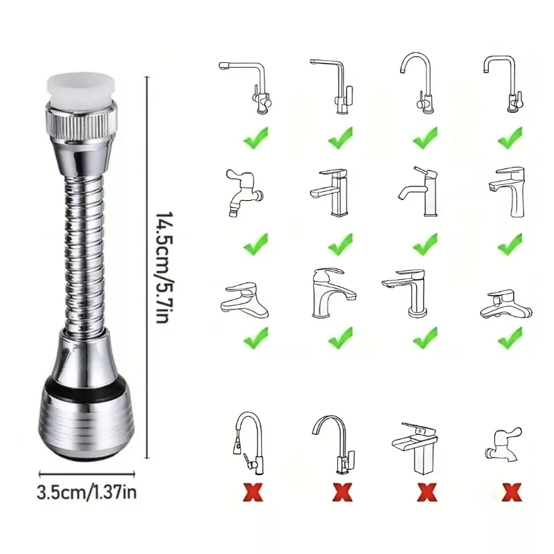 Ortorex jatke pyörii 360 astetta, jolloin voit ohjata veden virtausta mielesi mukaan. Se säästää aikaa astioiden pesussa tai pesualtaan puhdistuksessa.