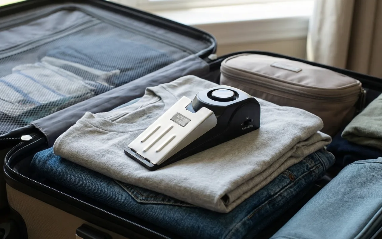 Käytin useissa hotellihuoneissa matkan aikana. Ei turhaa säätöä, aseta vain paikalleen ja valmis. Tunnen oloni paljon paremmaksi matkustaessani yksin.