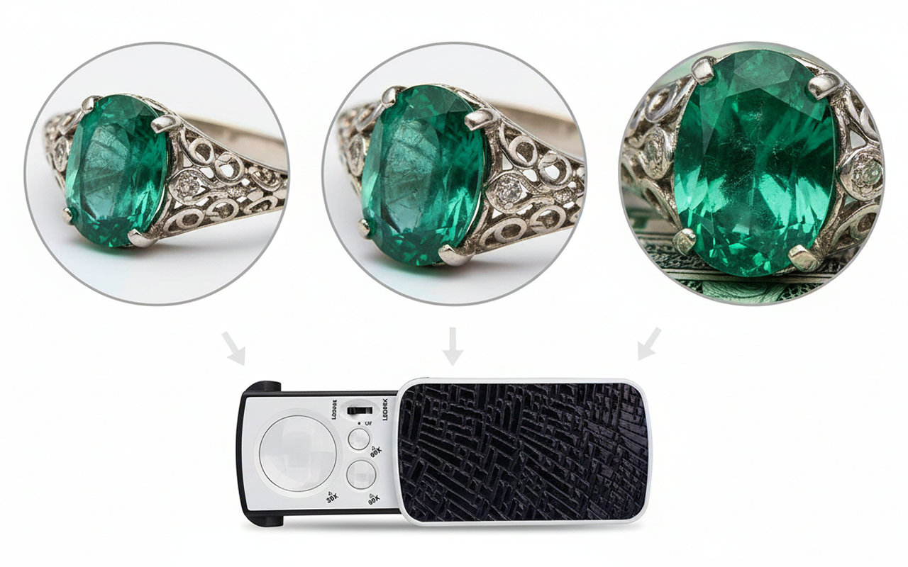 Tämä pieni suurennuslasi kulkee taskussani, kun olen ostamassa koruja. Voin katsoa kivien istutuksia läheltä ja valo auttaa arvioimaan puhtautta suoraan myymälässä.