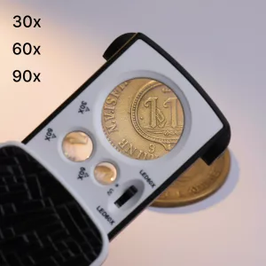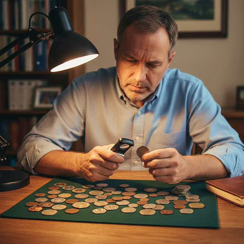 Hankin tämän kolikkokokoelmani tutkimiseen. Kolminkertainen zoomi paljastaa jokaisen pienen naarmun ja vuosiluvun, ja valo toimii erinomaisesti jopa kellarissa.