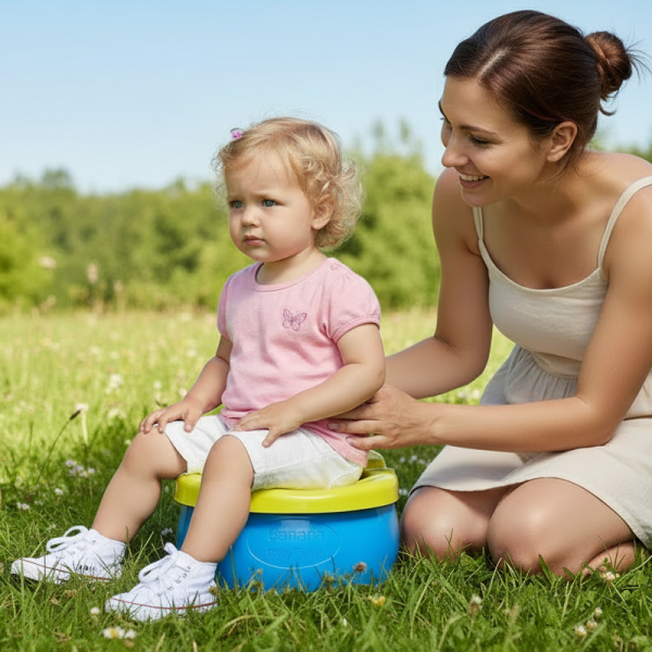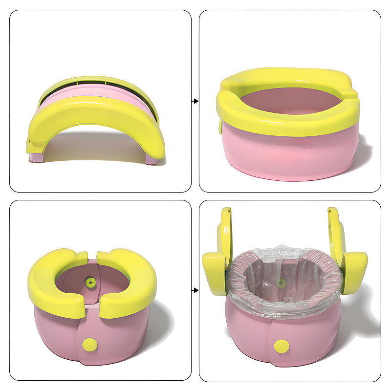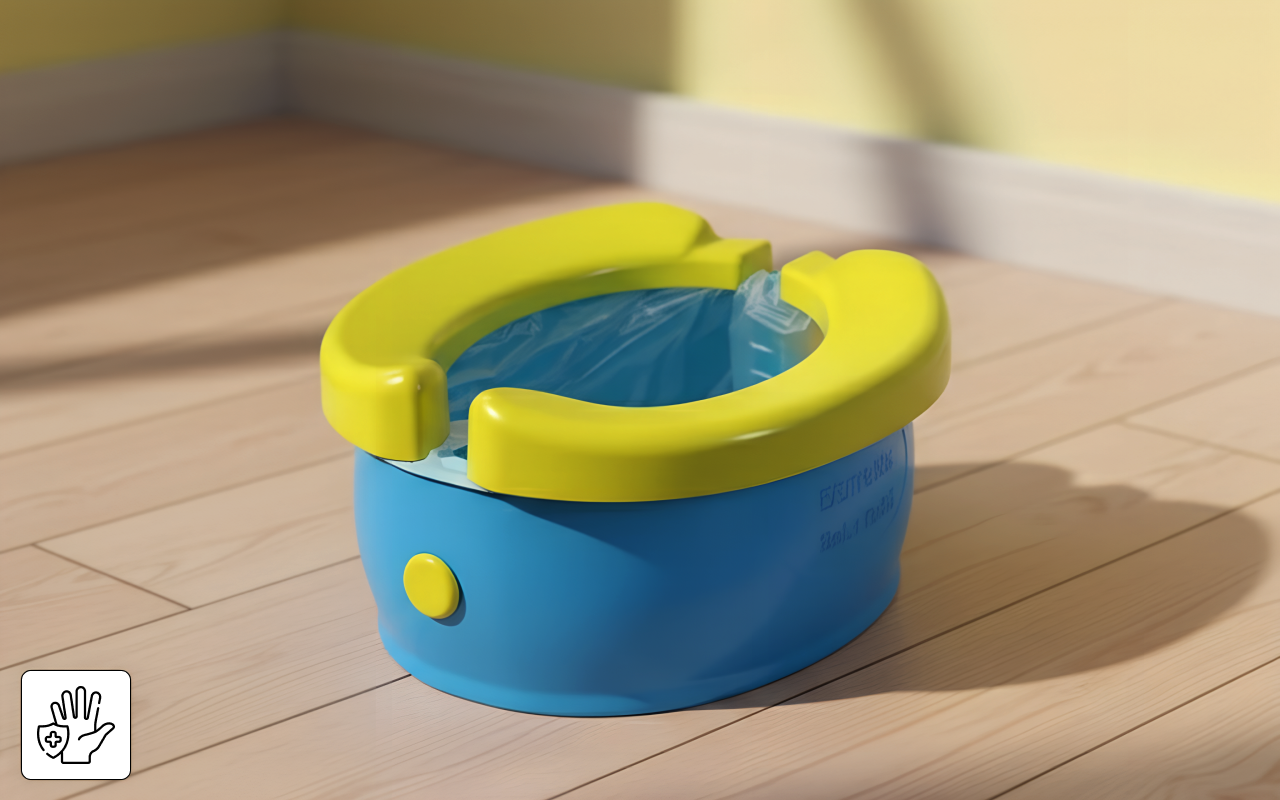Tämä pottaistuin varmistaa, ettei lapsen tarvitse käyttää likaisia julkisia vessoja. Kertakäyttöiset pussit pitävät kädet aina puhtaina.