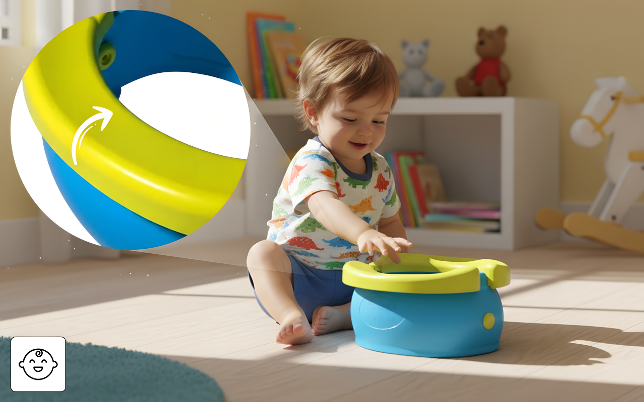 Kirkkaat värit ja sileät reunat saavat lapset tuntemaan olonsa turvalliseksi. Pottailuhetki on vähemmän stressaava pienille oppijoille.