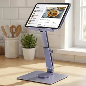 Käytän tätä jatkuvasti kokatessa pitääkseni reseptit lähellä. Telineen saa helposti puhtaaksi ja se pitää laitteeni täydellisesti pystyasennossa.