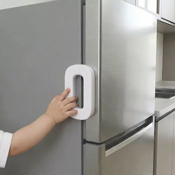 Pitää keittiön turvallisempana kaksosillemme, jotka availevat kaikkea. Tarrakiinnitys on tukeva ja väri sopii hopeanväriseen jääkaappiin.