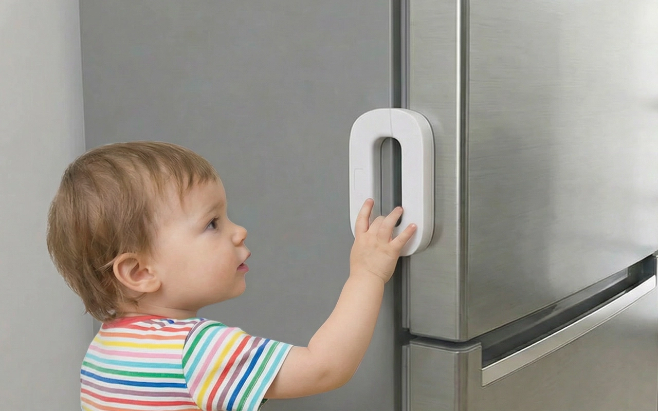 Pojanpoika on utelias kaikesta, mutta tämä lukko pitää hänet ulkona ja ruuat sisällä. Nappi aukeaa vain aikuisilta!